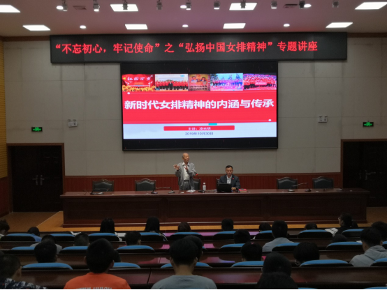 凌老师首先介绍了女排的发展史,十次夺得世界冠军的艰辛,让在场的同学对中国女排有了更多的了解。接着阐述了何谓“女排精神”和“女排精神”的由来,他指出“女排精神”是代表着一个时代的精神,是为国争光的责任感和使命感,是顽强拼搏永不言败的奋斗精神,是刻苦训练勇敢顽强的作风,是团结协作的团队精神。
