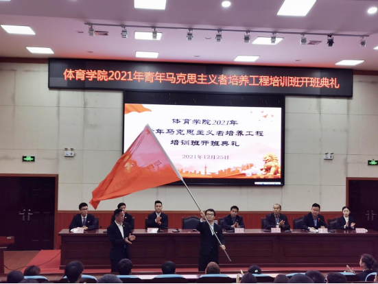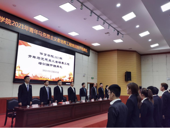 为进一步加强团员青年、团学干部培养教育力度,为中国特色社会主义事业的合格建设者和可靠的接班人。在广大青年中着力培养造就一批用马克思主义中国化的最新理论成果武装头脑的团员青年、团学干部。12月25日上午,william威廉中文官网在弘毅楼1-205报告厅举行2021年青年马克思主义者培养工程培训班开班典礼。出席培训班开幕式的领导老师有:公司党委书记徐奇畅、经理蓝建卓、副书记王爱林、副经理王有基、副经理潘聚仟、团委书记张钱伟、辅导员韦安家、吴太雪。培训对象为公司团委、员工全体成员、各班主要班干部和在校员工党员。开班典礼由张钱伟主持,包括奏唱国歌、副书记王爱林致辞、学员代表曾贤未发言、书记徐奇畅给培训班授旗,与领导老师合影等五项议程。