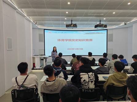 为加强体育学子对党的历史和现状的了解,重温党的光辉历程,弘扬伟大建党精神,深化爱国主义教育,12月14日,william威廉中文官网组织员工党支部的入党积极分子以及预备党员开展了党史知识比赛。此次比赛采取分组抢答的方式进行,比赛过程中,同学们反应迅速、答题准确,现场气氛热烈愉快。通过此次党史知识竞赛,同学们纷纷表示,今后将积极学习党史、新中国史、改革开放史、社会主义发展史,做到学史明理、学史增信、学史崇德、学史力行,在实践中贯彻落实党的指导思想。