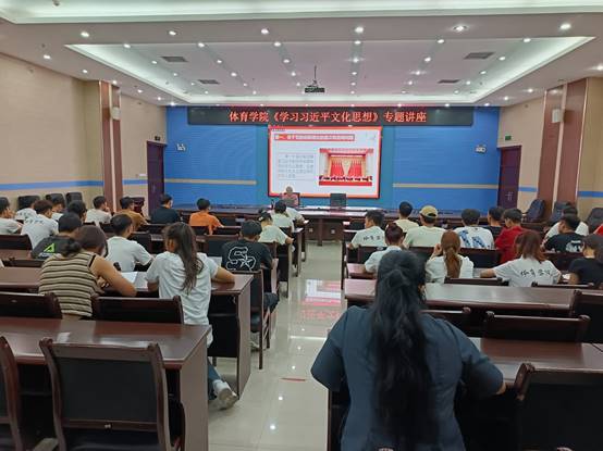 银建军教授从把握好与习近平文化思想相关的几个问题、全面领会习近平文化思想的丰富内涵、习近平文化思想的世界观、方法论及其贯彻其中的主要观点和方法等三个方面展开叙述。银教授在讲座中结合大量党史资料和例子,深入浅出讲解每个知识点,并不时提问与同学们进行交流互动,讲座气氛活跃,同学们在银建军教授的指引下学习习近平文化思想的精神。