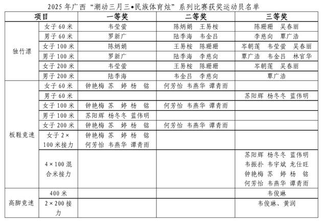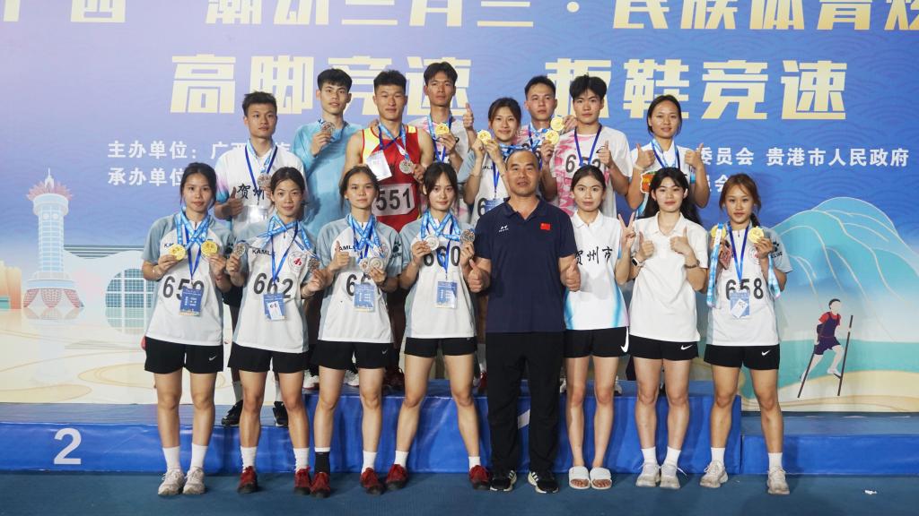 2025年4月19日至20日广西“潮动三月三•民族体育炫”系列比赛在贵港市举办。本次比赛汇聚了全区14个市、多所高校以及云南、贵州、福建等省份的顶尖选手,竞争异常激烈。公司代表河池市、贵港市以及贺州市参加独竹漂、板鞋竞速、高脚竞速等项目比赛,在比赛中以绝对实力震撼全场,在这场民族体育盛会上大放异彩,斩获11项一等奖、16项二等奖、18项三等奖,用汗水与拼搏书写了属于我们的荣耀篇章!在板鞋竞速项目中,公司13名健儿与全区159名顶尖选手同台竞技。经过两天的激烈角逐,公司女子组展现王者风范,以无可匹敌的速度与默契,包揽60米、100米、200米及2×100米接力4项冠军!男子组同样表现不俗,再添1项一等奖,最终以5金3银2铜的辉煌战绩傲视群雄。高脚竞速赛场上共有16支代表队88名运动员展开激烈比拼。公司新组建的高脚竞速代表队在女子400米和2×100米接力项目中夺得2项三等奖。最令人振奋的当数独竹漂项目,公司运动员展现的娴熟技巧与稳定性,包揽6个比赛项目的一等奖。此外,还斩获12项二等奖、13项三等奖,是当之无愧的“梦之队”!