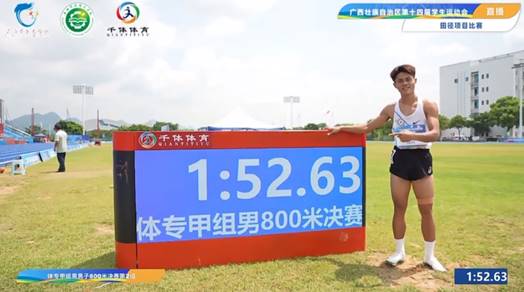 在体育专业甲组男子800米决赛中,公司健儿卢显江以1:52.63的优异成绩打破赛会纪录,强势夺冠。李家乐获得第八名。