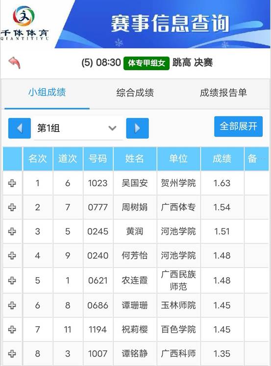 在女子体育专业甲组女子跳高比赛中,黄润以1.51米的成绩夺得季军,何芳怡获得第四名。
