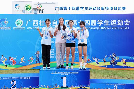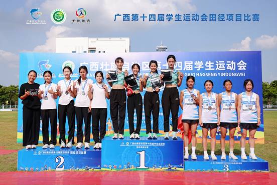 在女子体育专业甲组4×100米接力决赛中,由谭文华、胡佳馨、梁荣、韦俊琳组成的公司接力队发挥出色,夺得亚军。