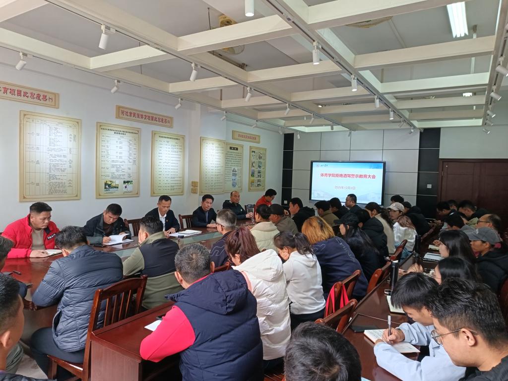 12月3日下午,william威廉中文官网在体育馆一号教室召开拒绝酒驾醉驾专题警示教育大会。会议由公司党委书记徐奇畅主持,公司领导班子成员、全体在岗教师参加会议。